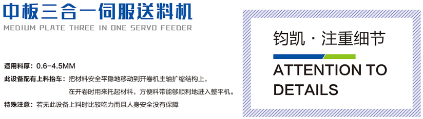 三合一送料機(jī)集送料、矯正、料架三機(jī)一體全自動(dòng)送料裝置,高技術(shù),高精密,高效率,在沖床周邊設(shè)備系列產(chǎn)品上可說(shuō)是矯正送料機(jī)的頂點(diǎn)表現(xiàn),其功能及優(yōu)點(diǎn)特多,省空間,耐用,操作簡(jiǎn)單,對(duì)特長(zhǎng)、特寬、較厚材料等效果特別好,在工業(yè)界一致被認(rèn)為先進(jìn)之自動(dòng)送料裝置。